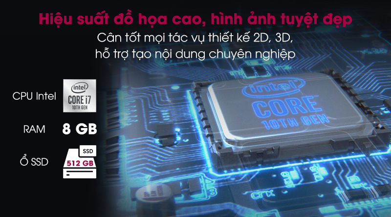 Ổ cứng SSD 512 GB M.2 PCIe cho tốc độ truy xuất dữ liệu nhanh, xử lí mọi thứ trong tích tắc, thả ga làm việc và sáng tạo.