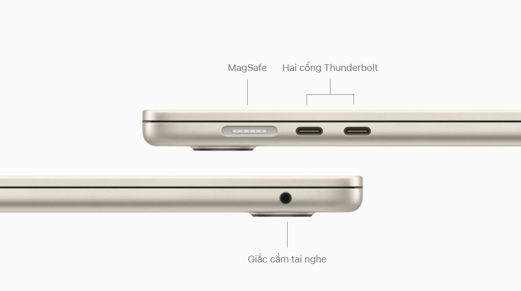 Các cổng kết nối bao gồm Jack tai nghe 3.5 mm, Thunderbolt 3, MagSafe 3,... cho quá trình truyền tải dữ liệu nhanh hơn, đồng thời hỗ trợ sạc pin nhanh cho máy.
