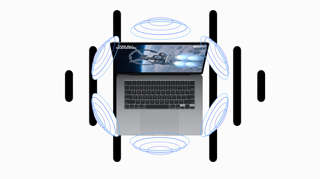 Sự kết tinh hài hòa giữa Dolby Atmos cùng công nghệ Spatial Audio và hệ thống 6 loa đã mang đến cho chiếc MacBook này một chất lượng âm thanh trên cả tuyệt vời, khả năng khuếch tán cao, không gian đa chiều sống động giúp bạn thả hồn trên những bản nhạc du dương hay vào chính nhân vật trong phim.