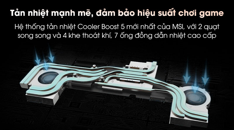 Công nghệ Cooler Boost 5 là công nghệ tản nhiệt chuyên dụng cho CPU và GPU với tổng cộng 7 ống dẫn nhiệt đảm bảo hiệu suất tối đa khi làm việc hoặc chơi game.