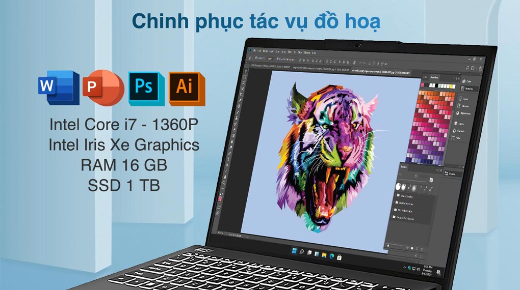 Laptop có RAM 16 GB LPDDR5 đảm bảo khả năng xử lý mượt mà và tốc độ chạy ứng dụng nhanh chóng. Ổ cứng SSD NVMe PCIe Gen 4 dung lượng 1 TB không chỉ cung cấp không gian lưu trữ rộng rãi mà còn tăng tốc độ đọc/ghi dữ liệu, cho phép bạn chạy các ứng dụng mượt mà, mở nhiều tab ứng dụng cùng lúc, chuyển đổi giữa các phần mềm mà không giật lag, đồng thời tiết kiệm thời gian khởi động máy.