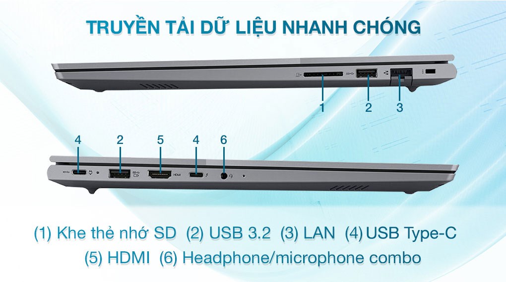 Máy được trang bị đầy đủ các cổng kết nối cần thiết cho công việc sáng tạo, bao gồm Thunderbolt 4 (hỗ trợ DisplayPort, Power Delivery 3.1), USB Type-C (hỗ trợ USB, Power Delivery và DisplayPort), USB 3.2, HDMI, cổng mạng LAN (RJ45) và jack tai nghe.