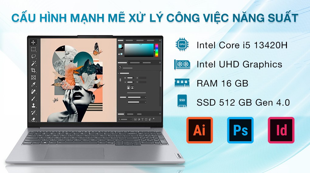 Sức mạnh đồ họa được đảm bảo bởi card rời NVIDIA GeForce RTX 4050 6 GB, cho phép xử lý mượt mà các tác vụ đồ họa 2D, 3D, render video độ phân giải cao và thậm chí là chơi các tựa game đòi hỏi cấu hình. Bộ nhớ RAM 32 GB DDR5 tốc độ 5600 MHz cung cấp khả năng đa nhiệm tuyệt vời, trong khi ổ cứng SSD 1 TB NVMe PCIe Gen 4 siêu tốc (nâng cấp tối đa 4 TB) giúp khởi động máy, mở ứng dụng và truy xuất dữ liệu chỉ trong tích tắc. Đây thực sự là một chiếc laptop AI mạnh mẽ.