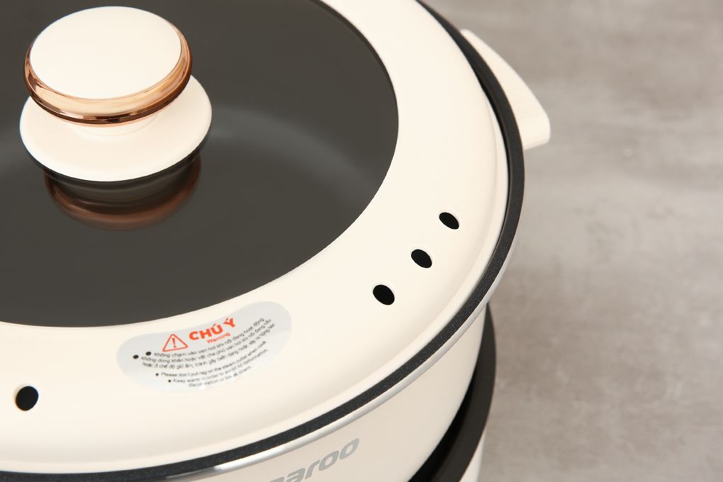 - Nồi lẩu điện Kangaroo không chỉ có thiết kế nhỏ gọn tiện đặt gọn trên bàn ăn hay dùng trong những buổi liên hoan nhỏ mà còn sở hữu bề ngoài gam màu kem mang lại sự nhẹ nhàng, tinh tế, dễ dàng kết hợp với không gian bếp nhỏ nhưng vẫn hiện đại, ấm cúng.