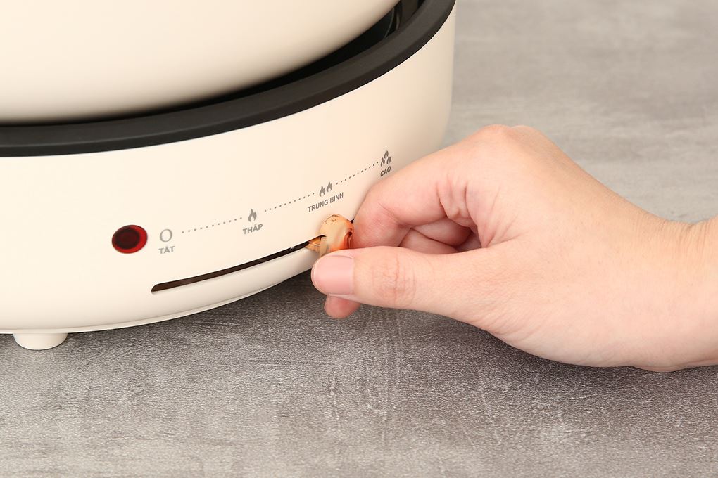 - Nồi lẩu điện có 3 mức nhiệt: thấp, trung bình, cao tùy theo nhu cầu món ăn.