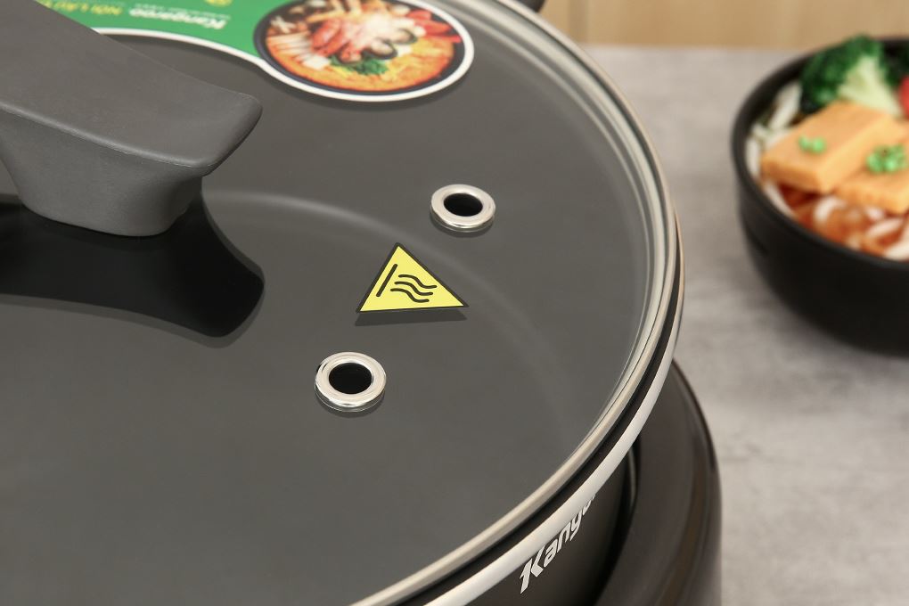 - Trang bị nắp kính cường lực chịu nhiệt tốt, trong suốt dễ quan sát thức ăn trong nồi và có 2 lỗ thoát khí chống tràn hiệu quả.