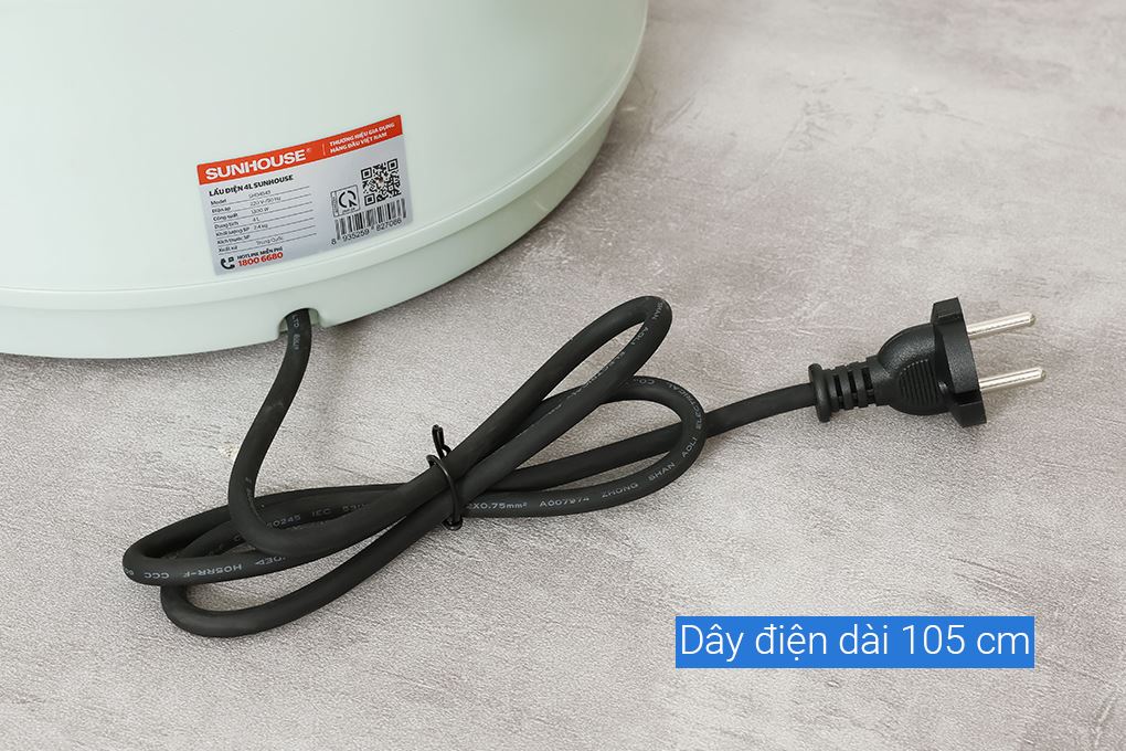 - Dây điện dài 105 cm, thuận tiện bố trí trên bàn ăn hoặc quầy bếp.