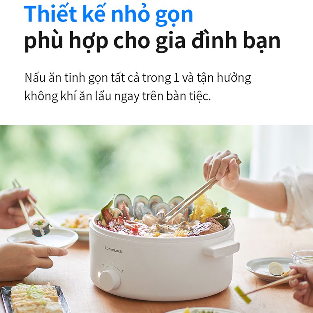 Trải nghiệm bữa ăn chuẩn vị với nồi lẩu hấp đa năng Lock&Lock EJP124IVY 3 lít. Chiếc nồi này có công suất 1000W mạnh mẽ và dung tích 3 lít, đây sẽ là trợ thủ đắc lực cho gia đình nhỏ từ 2 - 3 người, giúp bạn chuẩn bị các món ăn thơm ngon, đa dạng một cách nhanh chóng và tiện lợi.