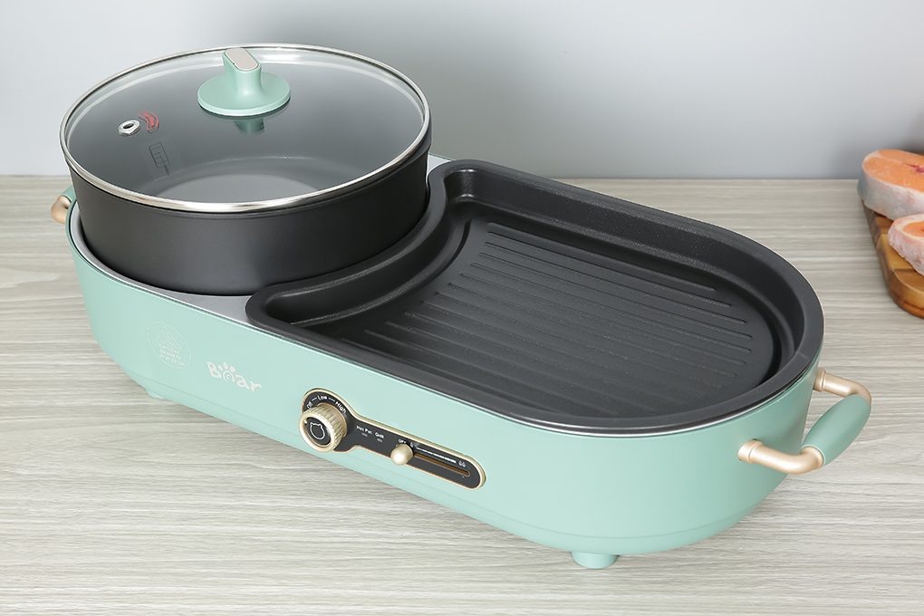 Bếp lẩu nướng đa năng Bear có thiết kế thông minh, dung tích 2.5 lít cùng công suất 1600W, điều chỉnh nhiệt độ độc lập, sử dụng linh hoạt, có thể thưởng thức cùng lúc món nướng và món lẩu.