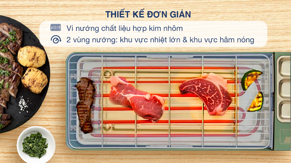 - Mẫu bếp nướng điện này có thiết kế nhỏ gọn cùng màu sắc hiện đại, phù hợp với mọi không gian bếp.