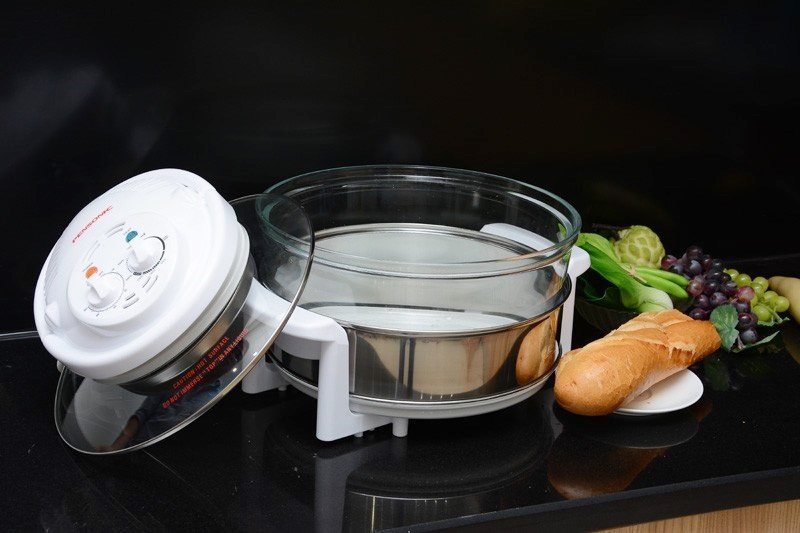 Đèn Halogen tạo ra nhiệt lượng làm chín thực phẩm nhanh chóng, có màu vàng ngon, hấp dẫn.