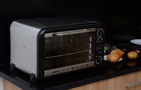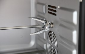 Nhiều mức nhiệt độ tùy chỉnh bằng nút vặn, tối đa 250oC, linh hoạt với từng món nướng khác nhau. | Lò đi kèm các phụ kiện: khay hứng mỡ, vỉ nướng, xiên quay, que nướng, tay cầm. |