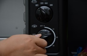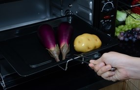 Hẹn giờ nướng thông minh, tiện lợi hơn khi không phải tự tay ngắt như nướng bếp lửa thông thường. | Thực phẩm chín đều ở mọi góc cạnh do hơi nóng tiếp xúc ở tất cả các mặt nhờ có quạt đảo nhiệt. | |