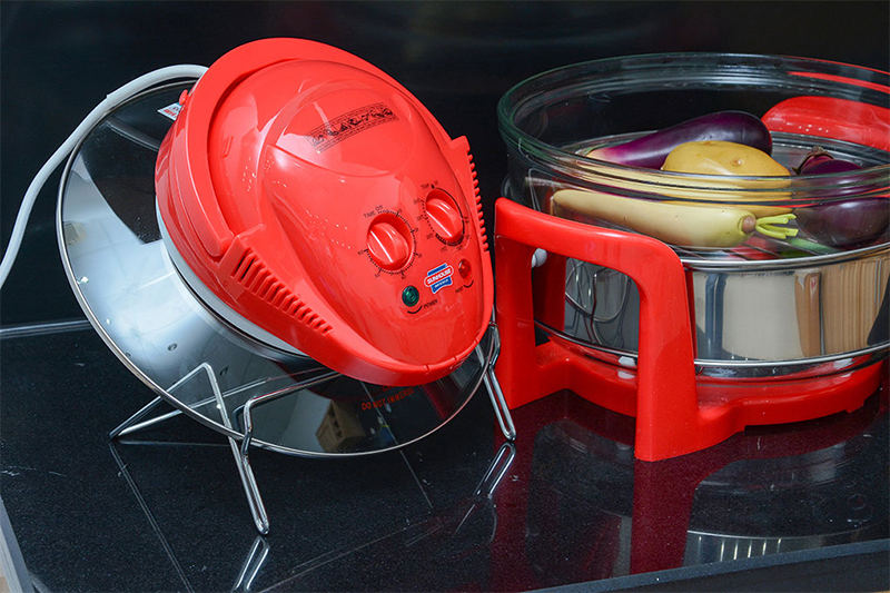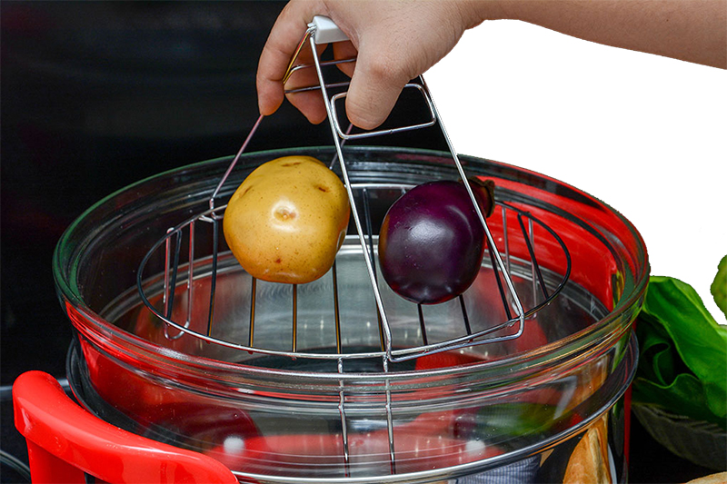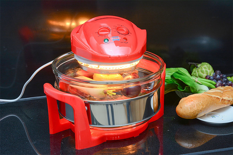 Lò nướng thuỷ tinh có núm chỉnh nhiệt độ, ngoài chức năng nướng thịt, nướng rau củ, nướng bánh, lò còn có chức năng hấp, hâm nóng, quay… Đồng thời, người dùng có thể hẹn giờ tự động giúp thức ăn không bị cháy khét.