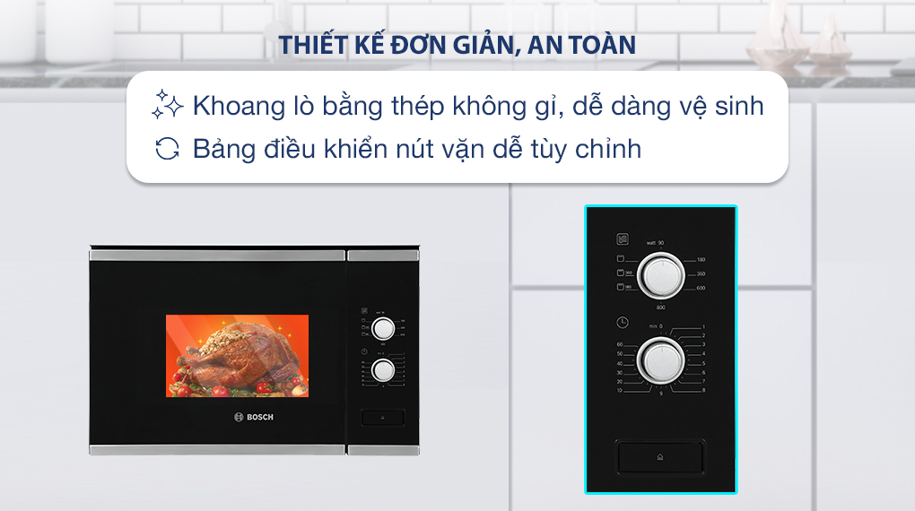 - Khoang lò vi sóng Bosch này được làm bằng thép không gỉ, vừa an toàn vừa dễ dàng lau chùi và vệ sinh.