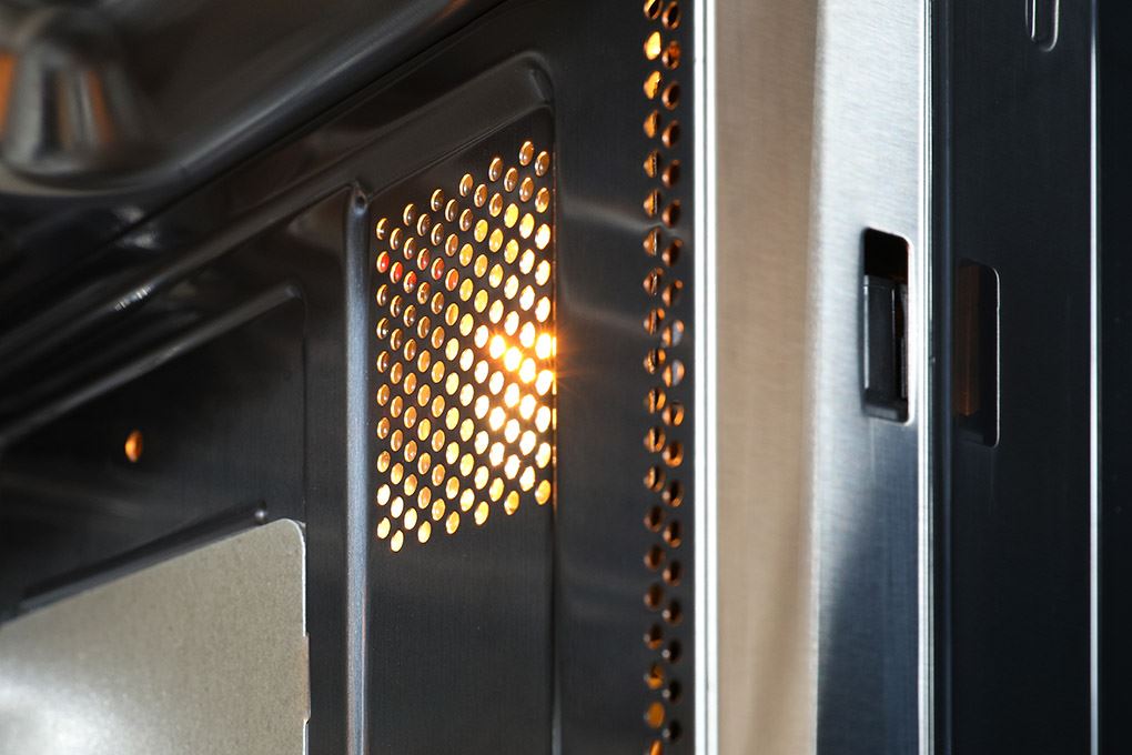 Nướng đối lưu sử dụng quạt gió để luân chuyển hơi nóng khắp khoang lò, giúp món nướng chín đều cả hai mặt, lớp vỏ ngoài vàng giòn mà không bị khô. Phù hợp khi bạn chế biến các món như thịt nướng, bánh mì hay cá nướng.