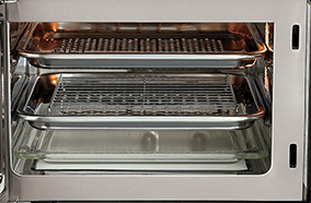 Lò vi sóng được cài sẵn 18 thực đơn hấp, 6 thực đơn vi sóng cùng 4 chế độ nướng giúp bạn rã đông, hâm nóng và nấu ăn dễ dàng. Đồng thời, bạn còn có thể nấu bằng 2 khay cùng 1 lúc để tiết kiệm tối đa thời gian nấu nướng. |