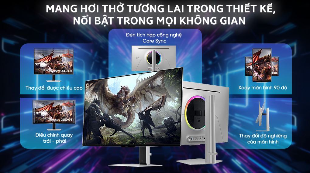 Khám phá thế giới giải trí đỉnh cao với màn hình gaming Samsung Odyssey OLED G8 LS32DG802SEXXV 32 inch 4K. Nhờ tần số quét cao mà bạn sẽ được đắm mình vào những khung hình sắc nét và mượt mà, từ những trận chiến game nảy lửa đến các tác vụ sáng tạo chuyên nghiệp. Không chỉ mang lại hiệu năng mạnh mẽ, thiết kế sang trọng cùng khả năng điều chỉnh linh hoạt và loa tích hợp biến chiếc màn hình này trở thành một trung tâm giải trí đa năng, hoàn hảo cho mọi không gian sống hiện đại.