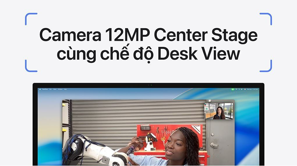 Ngoài ra, tính năng Desk View còn hỗ trợ người dùng chia sẻ góc nhìn từ trên xuống mặt bàn làm việc, cực kỳ hữu ích cho các buổi thuyết trình sản phẩm thủ công hoặc hướng dẫn trực quan mà không cần lắp đặt thêm thiết bị ghi hình rời.