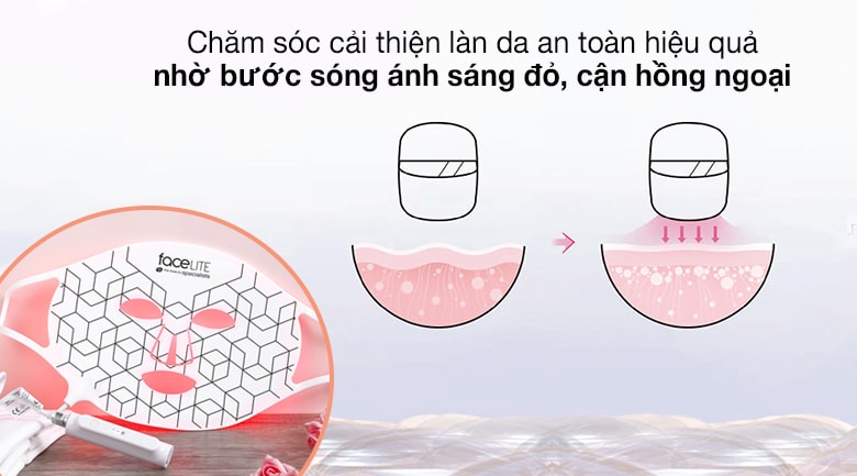 - Mặt nạ FaceLITE có thể được kết hợp với mặt nạ Hydrogel để tăng cường kết quả (Vui lòng xem hướng dẫn được cung cấp kèm với FaceLITE)