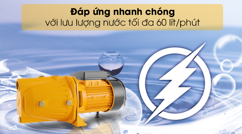 Cung cấp lượng nước tối đa lên đến 60 lít/phút đáp ứng các nhu cầu sinh hoạt của gia đình nhờ vào công suất 750W mạnh mẽ. Tuy nhiên lưu lượng nước sẽ giảm nếu vị trí lắp máy có địa thế và đường dẫn nước phức tạp.