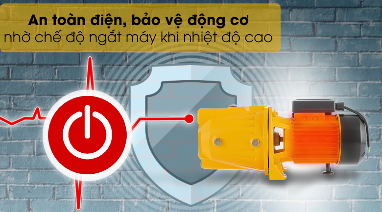 Tránh quá tải, cháy nổ khi máy bơm hoạt động quá lâu và nhiều nhờ chức năng tự ngắt hoạt động khi có dấu hiệu nhiệt độ cao trên 130 ⁰C, đảm bảo an toàn cho máy bơm nước tăng áp này.