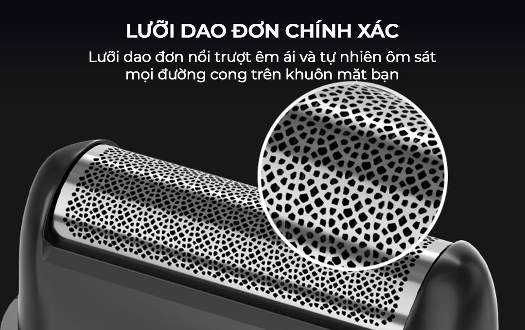 • Lưới cạo cong, mỏng giúp đường cạo mượt mà, ôm sát theo đường nét khuôn mặt, không gây kích ứng da.