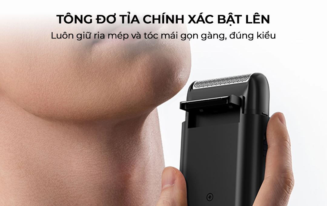 - Trang bị lưỡi dao phụ có chức năng như một chiếc tông đơ nhỏ hỗ trợ tỉa tóc mai hoặc tạo hình chi tiết ở vùng râu.
