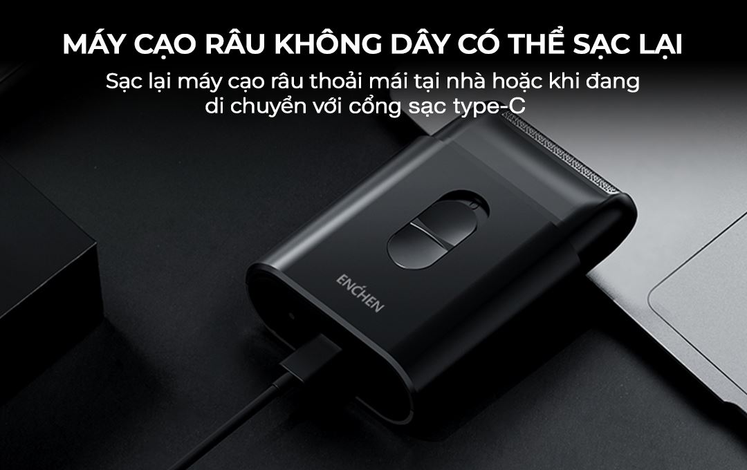 - Enchen MS003 sử dụng pin Li-ion, sạc qua cổng Type-C tiện lợi, tương thích với nhiều thiết bị như củ sạc, laptop, sạc dự phòng.