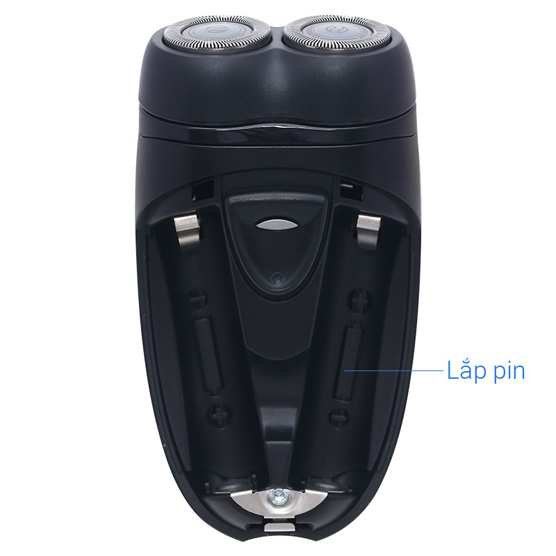 - Thiết kế máy cạo râu không dây dùng 2 viên pin AA tiện lợi, dễ thay thế.