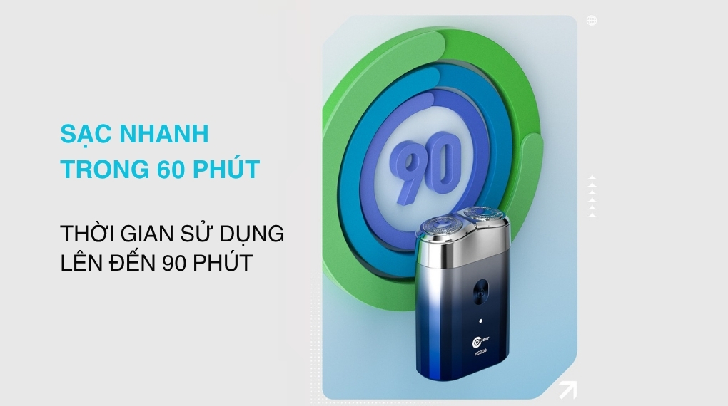 - Chỉ cần 1 giờ sạc - máy có thể hoạt động liên tục khoảng 90 phút, thoải mái sử dụng nhiều lần. Tính năng sạc nhanh và vừa cạo vừa sạc đặc biệt hữu ích với người bận rộn hoặc hay di chuyển.