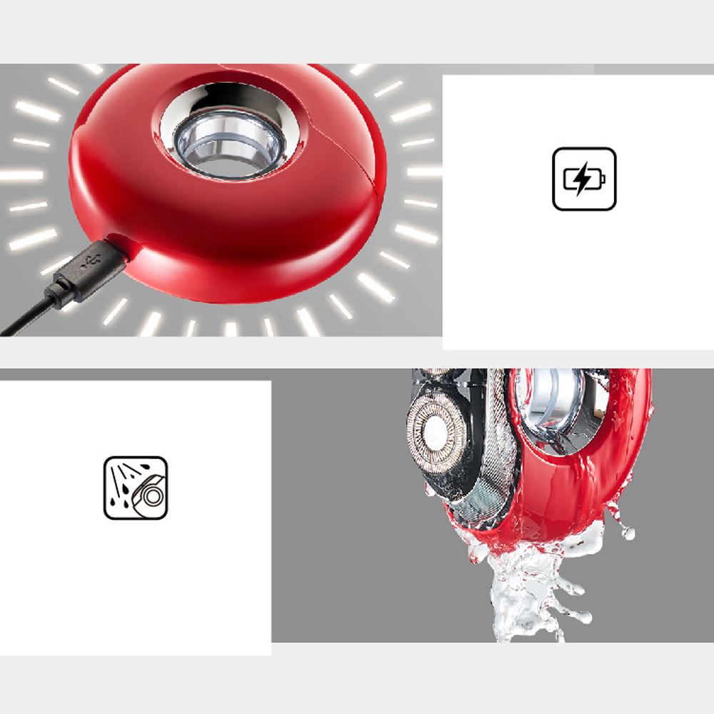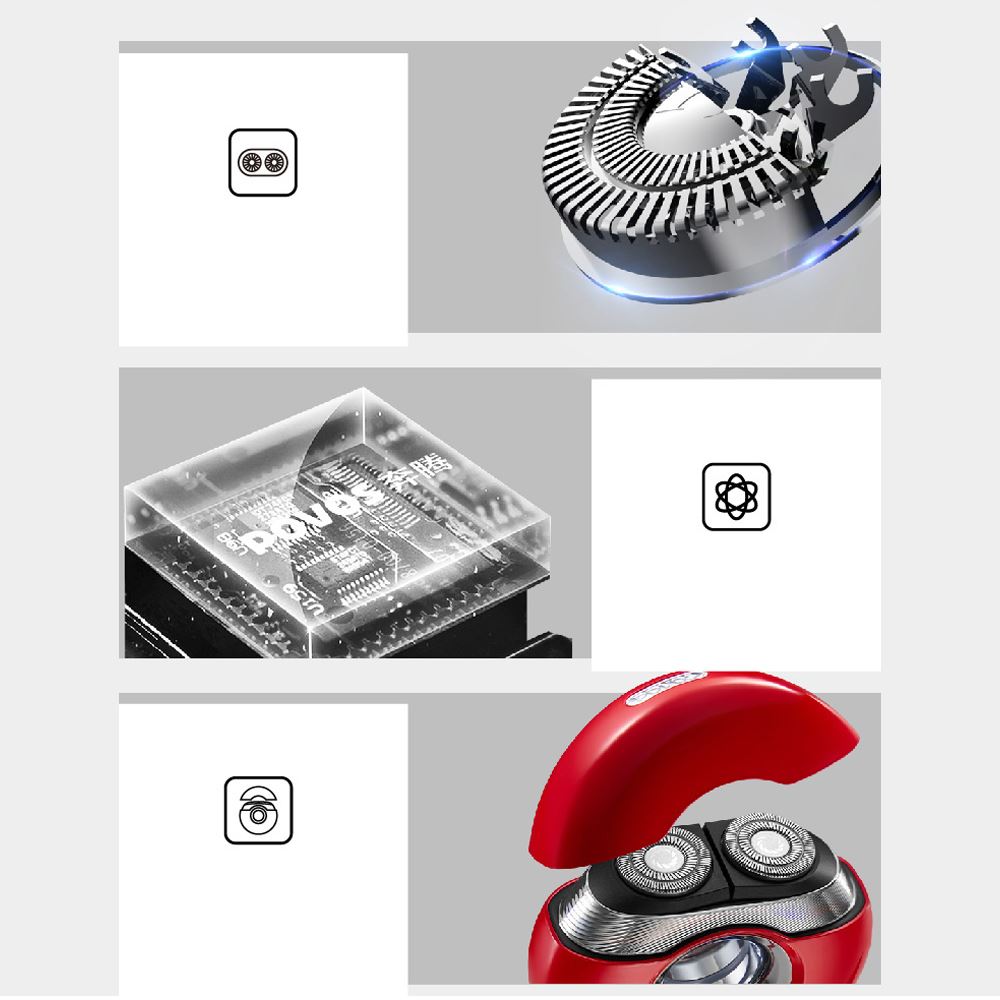 Chiếc máy cạo râu POVOS T000 này gây ấn tượng với kiểu dáng tròn giống như một chiếc bánh donut cùng phối màu đỏ tươi trẻ trung, hiện đại. Máy được thiết kế nhỏ gọn với kích thước chỉ 7.9 x 7.9 x 3 cm, khối lượng 300g, dễ dàng cầm nắm và mang theo khi đi du lịch, công tác,... Thân máy làm từ nhựa ABS và PC bền bỉ, trong khi lưỡi dao chế tác từ thép không gỉ sắc bén, đảm bảo độ bền và hiệu suất cao.