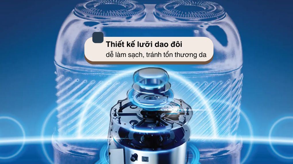 Cụm 2 lưỡi cạo bằng thép không gỉ hỗ trợ cắt râu gọn, phù hợp nhu cầu cạo râu cơ bản và dễ làm sạch.