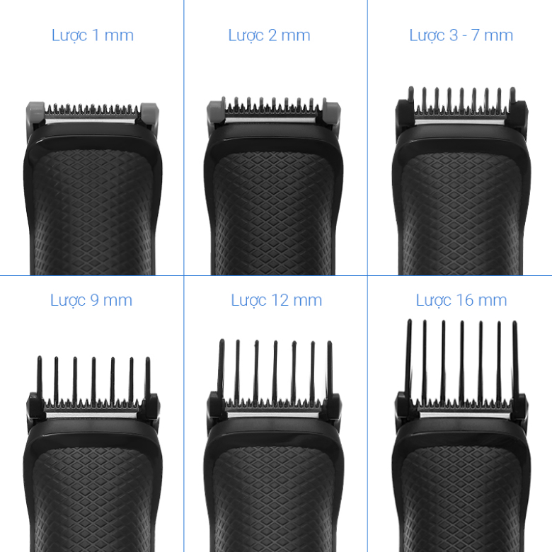 - Cắt tóc, cạo râu đến độ dài mong muốn với 6 lược tỉa: