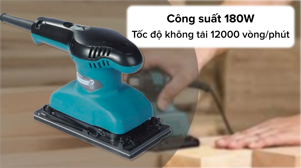 - Máy chà nhám có công suất hoạt động 180W với tốc độ không tải mạnh mẽ, lên đến 12000 vòng/phút kết hợp cùng cơ chế giảm rung và giảm tiếng ồn, giúp đem lại năng suất làm việc hiệu quả.