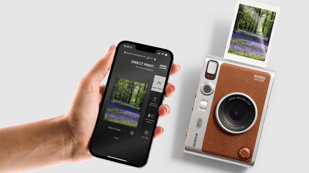 Instax Mini Evo Nâu không chỉ giới hạn trong vai trò một chiếc máy ảnh lấy liền, mà còn hoạt động như một máy in ảnh di động cao cấp thông qua kết nối Bluetooth với smartphone. Người dùng có thể in trực tiếp ảnh từ điện thoại ra phim Instax với độ phân giải cao, mang lại sự linh hoạt tối đa trong quá trình sử dụng.