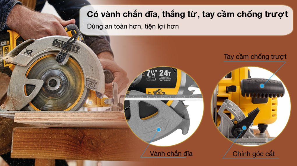 - Máy cưa Dewalt dùng động cơ không chổi than vận hành bền bỉ hơn so với động cơ chổi than thông thường.