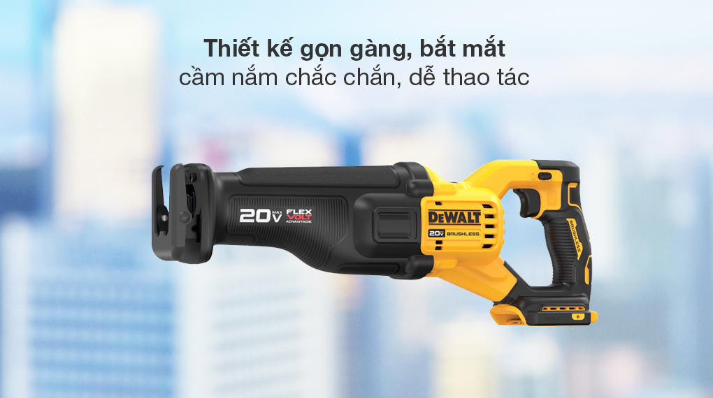 - Máy cưa Dewalt có kiểu dáng hiện đại, thiết kế khá tương tự cưa kiếm thủ công nên bạn dễ dàng làm quen và sử dụng sản phẩm.