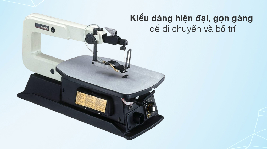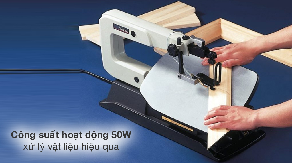 - Máy cưa lọng hoạt động với công suất 50W, tốc độ không tải tối đa 400-1600 vòng/phút, phục vụ tốt cho nhu cầu cưa cắt, đục đẽo, tạo hoa văn cho các sản phẩm đồ gỗ như giường, tủ đồ, bàn ghế,... trong các phân xưởng, cửa tiệm.
