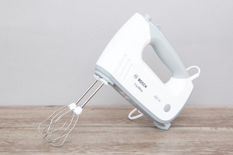 Máy đánh trứng Bosch thiết kế sang trọng với vỏ ngoài bằng nhựa sáng bóng có lớp phủ mềm chống trượt, hạn chế bám bẩn, dễ dàng vệ sinh