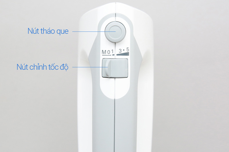 Máy đánh trứng với 5 tốc độ quay cùng công suất 450 W giúp đánh trứng và trộn bột nhanh, thêm 1 mức công suất tăng cường gia tăng tốc độ quay