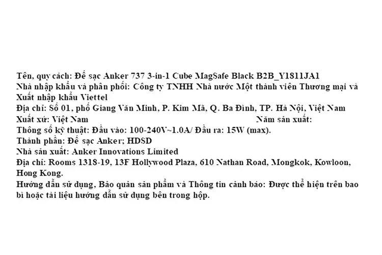 Thông số kỹ thuật Đế sạc không dây 3 in 1 15W MagSafe Anker 737 Cube Y1811