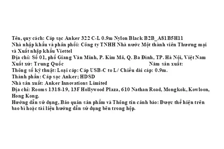 Thông số kỹ thuật Cáp sạc nhanh và truyền dữ liệu Type-C - Lightning 20W 0.9m Anker 322 A81B5