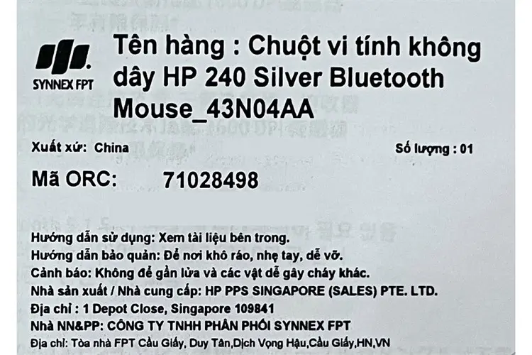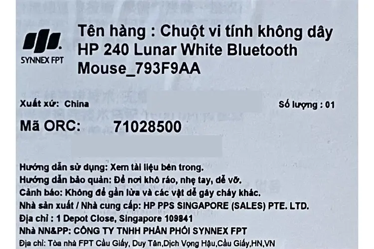 Thông số kỹ thuật Chuột Bluetooth HP 240