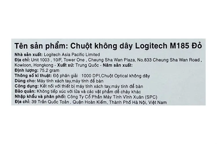 Thông số kỹ thuật Chuột Không dây Logitech M185