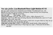Thông số kỹ thuật Loa Bluetooth Rezo Light Motion K118