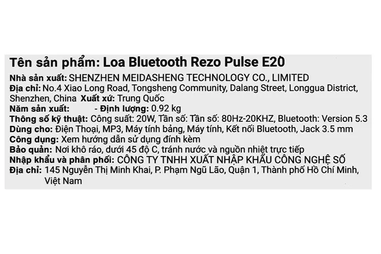 Thông số kỹ thuật Loa Bluetooth Rezo Pulse E20