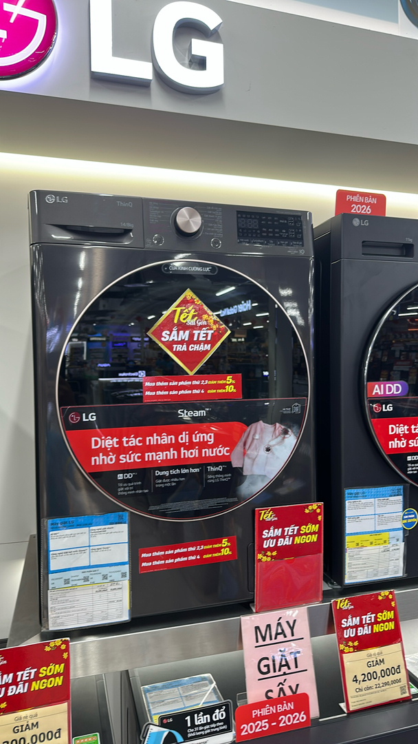 10 sản phẩm Máy giặt sấy LG AI DD Inverter giặt 14 kg - sấy 8 kg FV1414H3BA đã sử dụng, trưng bày giá rẻ