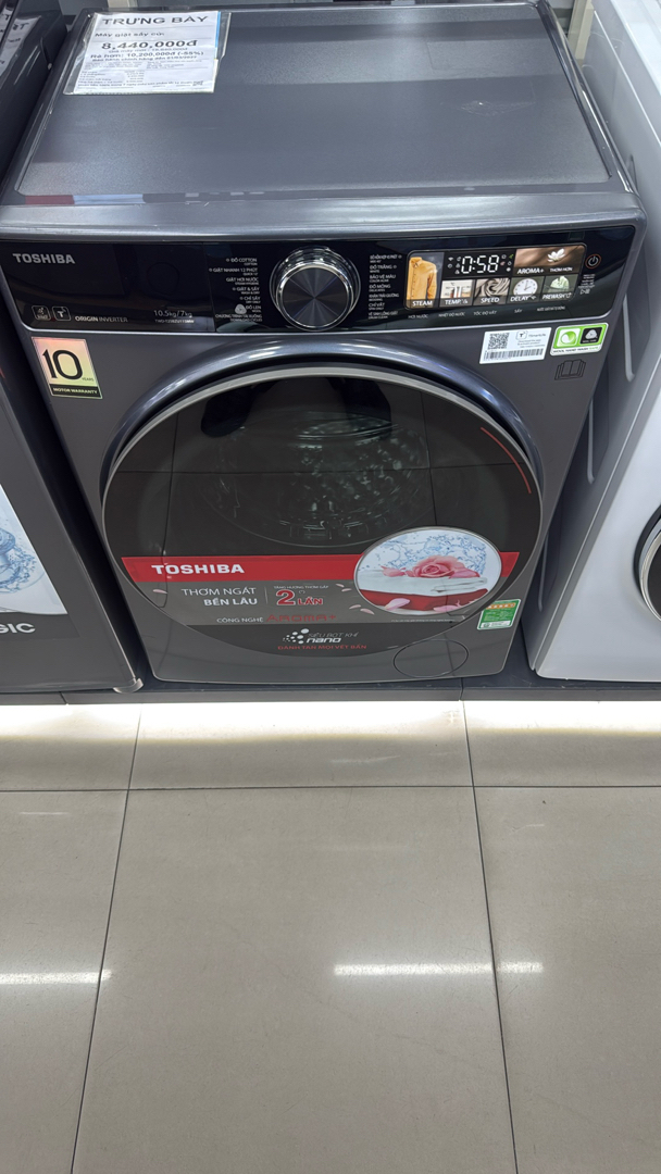 1 sản phẩm Máy giặt sấy Toshiba Inverter giặt 10.5 kg - sấy 7 kg TWD-T25BZU115MWV(MG) đã sử dụng, trưng bày giá rẻ
