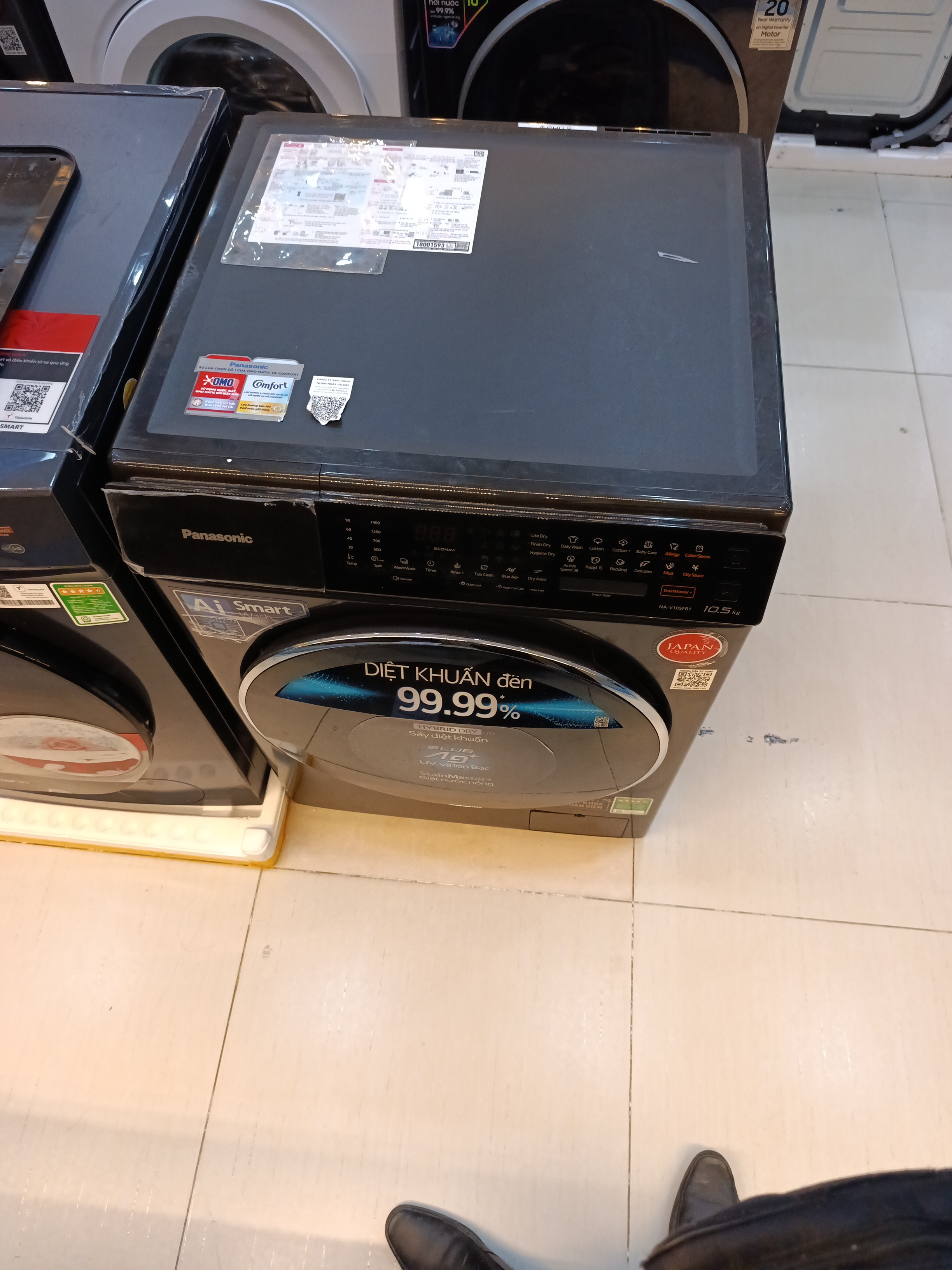 2 sản phẩm Máy giặt Panasonic Inverter giặt 10.5 kg - sấy tiện ích 2 kg NA-V105FR1BV đã sử dụng, trưng bày giá rẻ